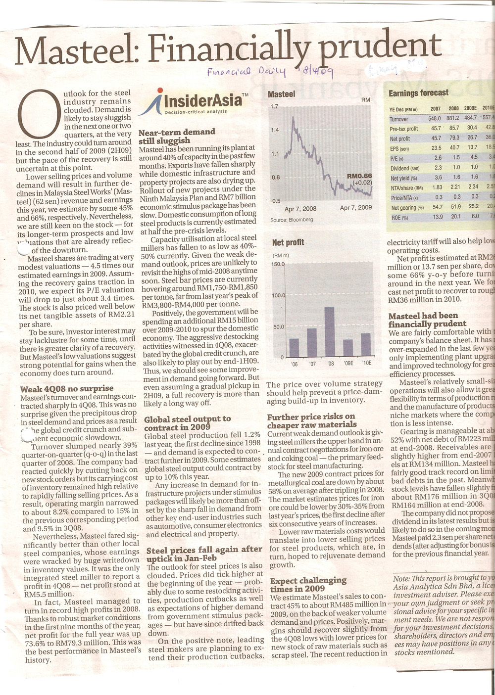 Masteel Financially Prudent